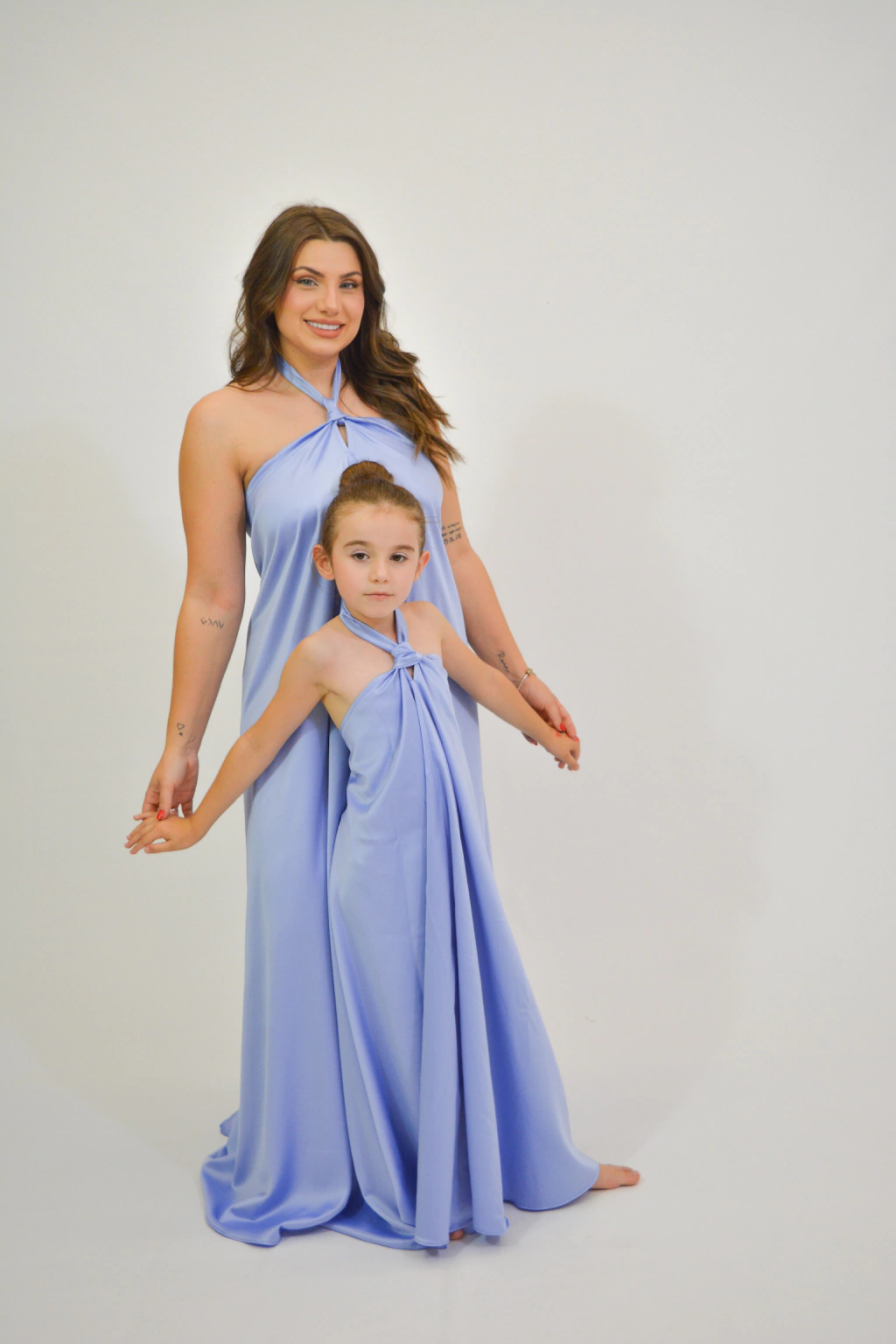 Agora a sua baby pode ficar igualzinha à mamãe! Tal mãe, tal filha! Vestido longo bahia, modelagem frente única, com amarração na nuca.